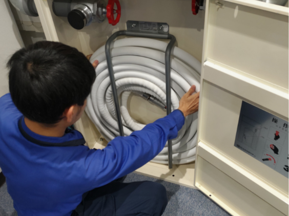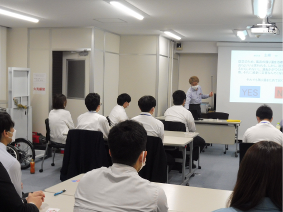 消防設備点検を社員に同行して実際の建物にて消防設備点検ではどのように設備の点検をしているか体験していただきます。 |
